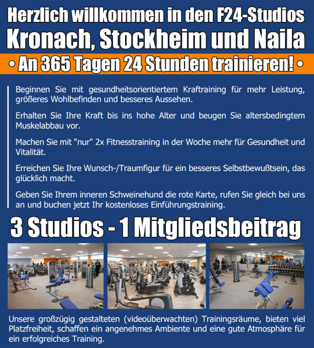 F24 Kronach, Stockheim, Naila - Von der Cellulite ist heutzutage fast jede Frau mehr oder minder befallen. Frauen die von der „Orangenhaut“ verschont bleiben, werden immer seltener. Schon entdeckt man bei Mädchen im Pubertätsalter die ersten Verformungen an den Oberschenkeln und Gesäß. Die Cellulite ist mehr als nur ein Schönheitsproblem. Wird sie nicht behandelt, ist die Gesundheit tatsächlich gefährdet. Auf Dauer können Krampfadern, Thrombosen und Ödeme die Folgen sein. Dem kann man zum Glück vorbeugen. Komm zu uns und lass dich individuell beraten! www.24std-fitness.de